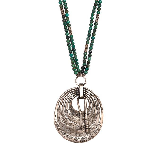 El placer de combinar intuitivamente estas piedras con pátina ancestral ha originado una gran colección de collares que hablan de dónde venimos y también de lo que somos. Un retorno al origen.